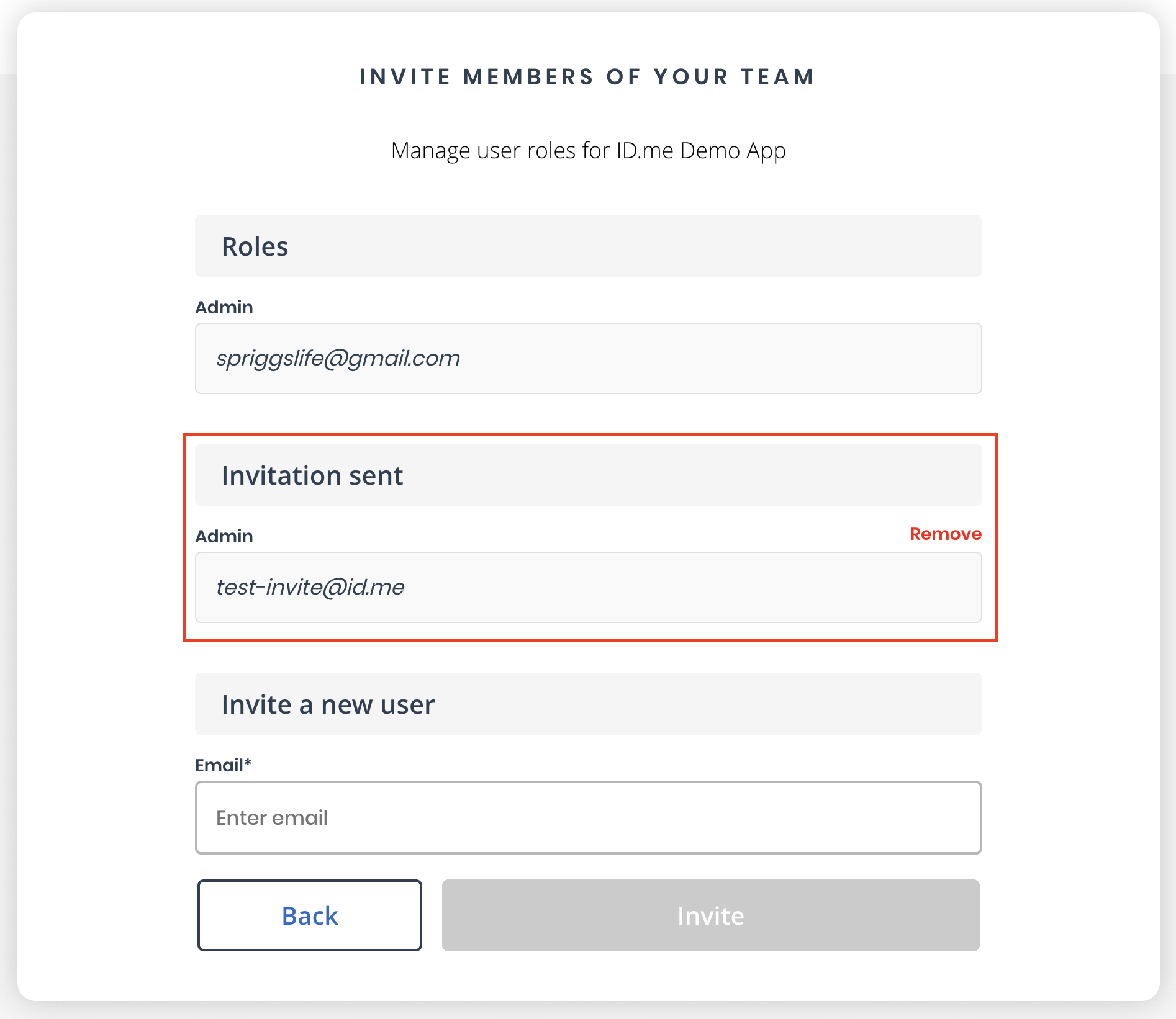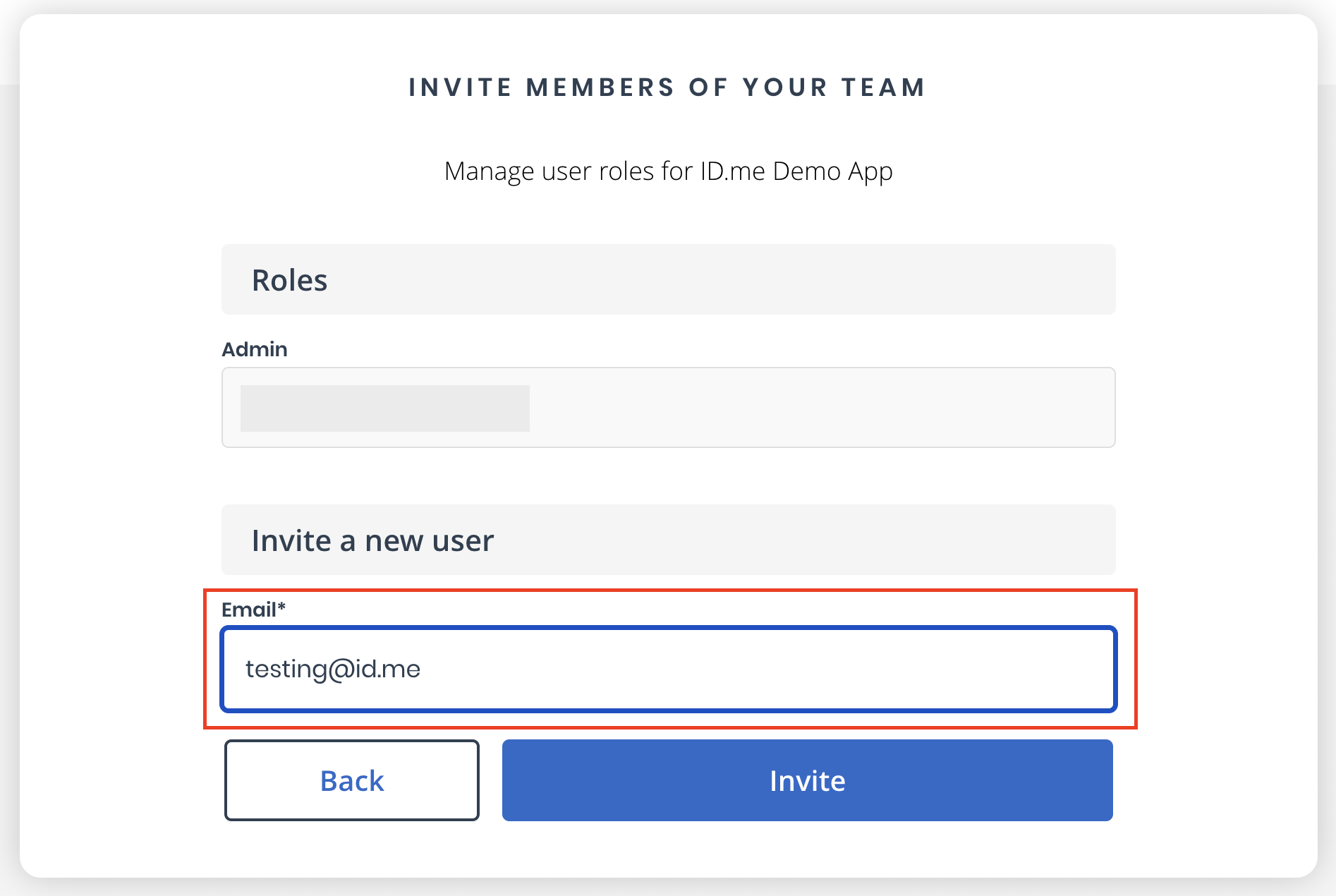 - The invitation process will fail if the email address is not associated with an existing ID.me user